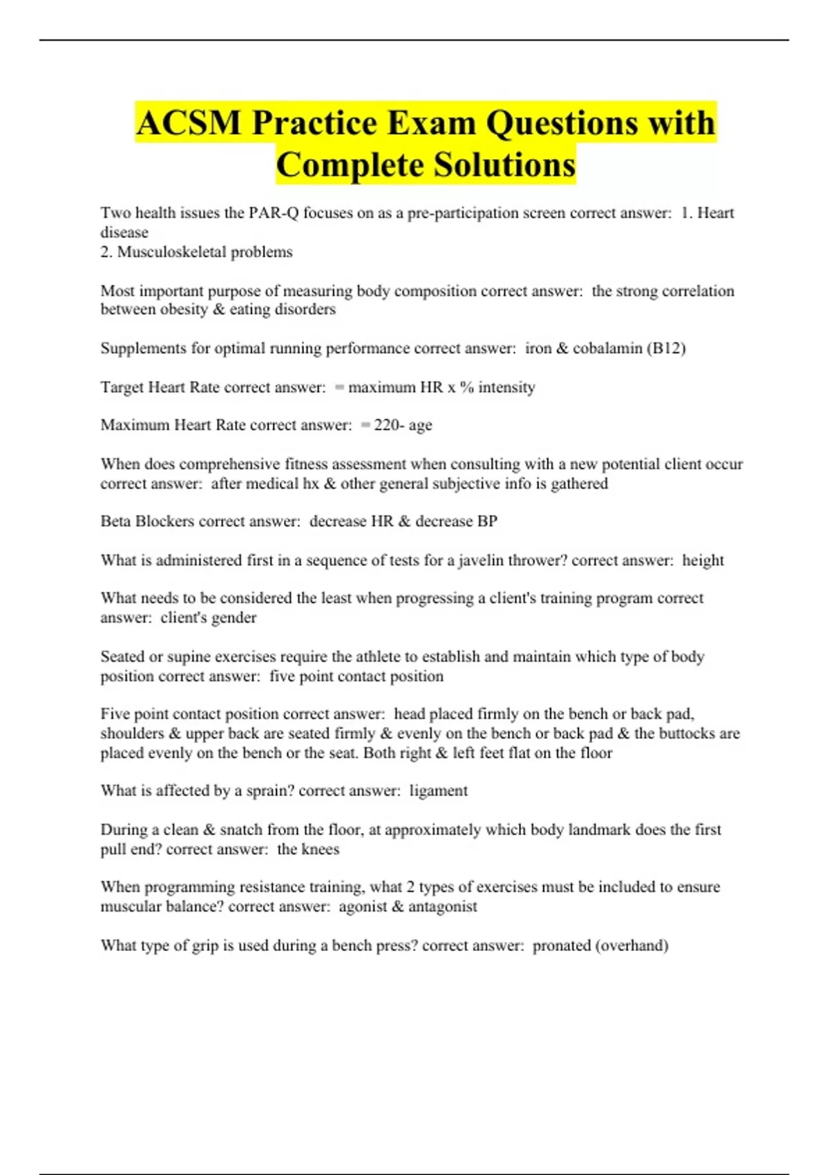 ACSM Practice Exam Questions with Complete Solutions.