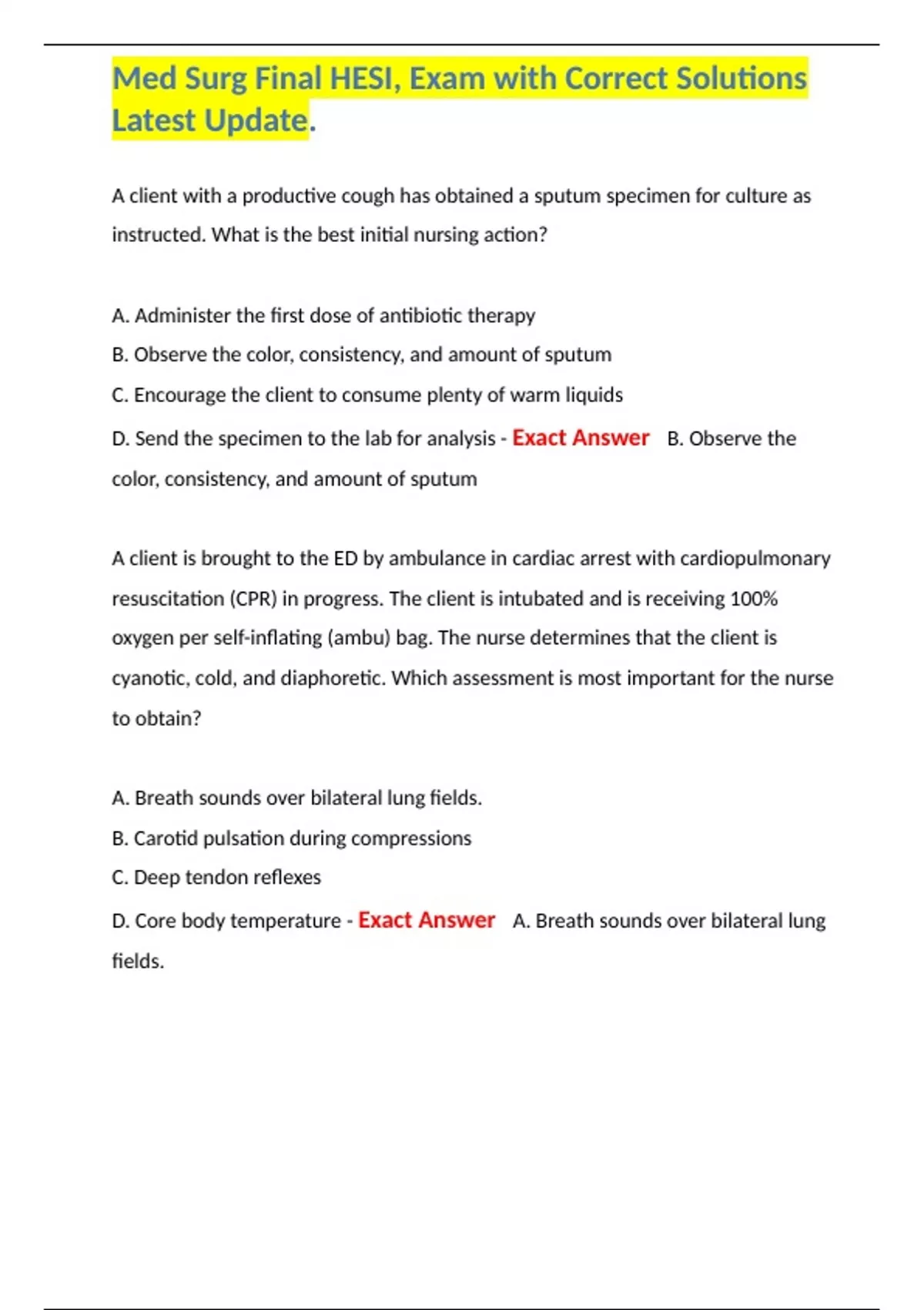 Med Surg Final HESI, Exam with Correct Solutions Latest Update.