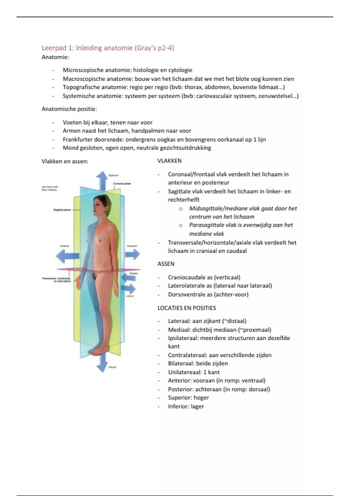 Leerpad 1: Inleiding anatomie (Gray’s p2-4)