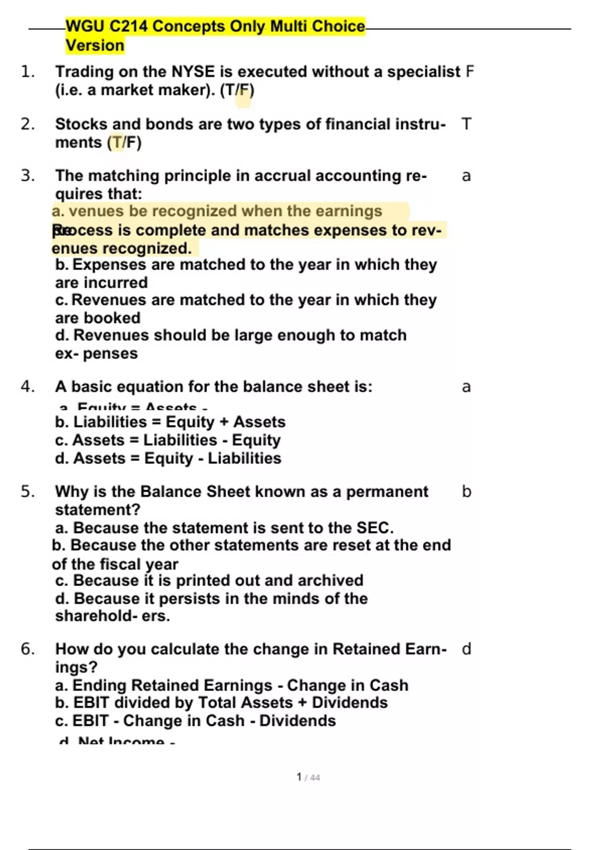 WGU C214 Concepts Only Multi Choice