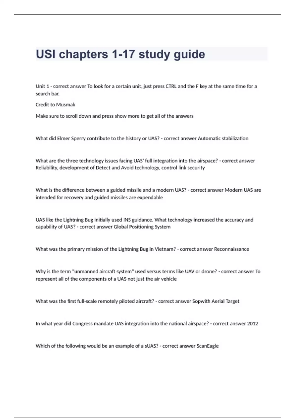 USI chapters 1-17 study guide questions and 100% correct answers