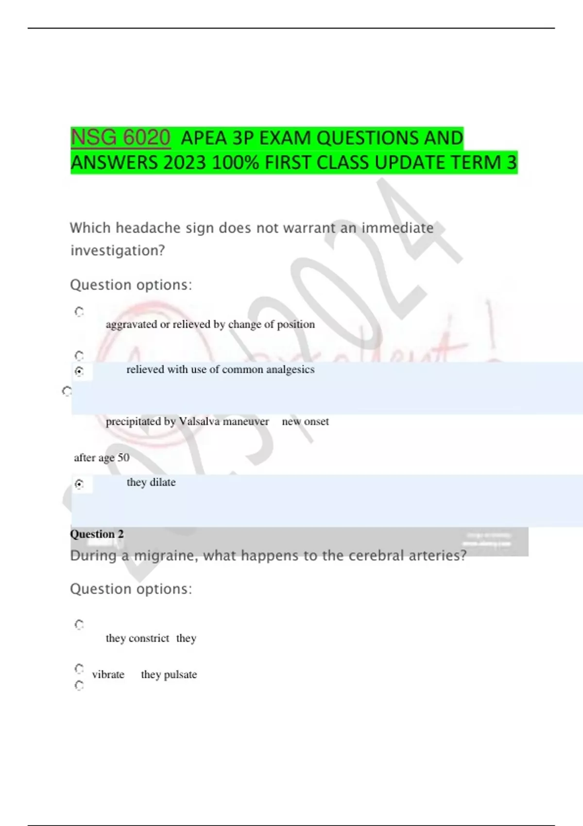 NSG 6020 APEA 3P EXAM QUESTIONS AND ANSWERS 2023 100% FIRST CLASS UPDATE TERM 3