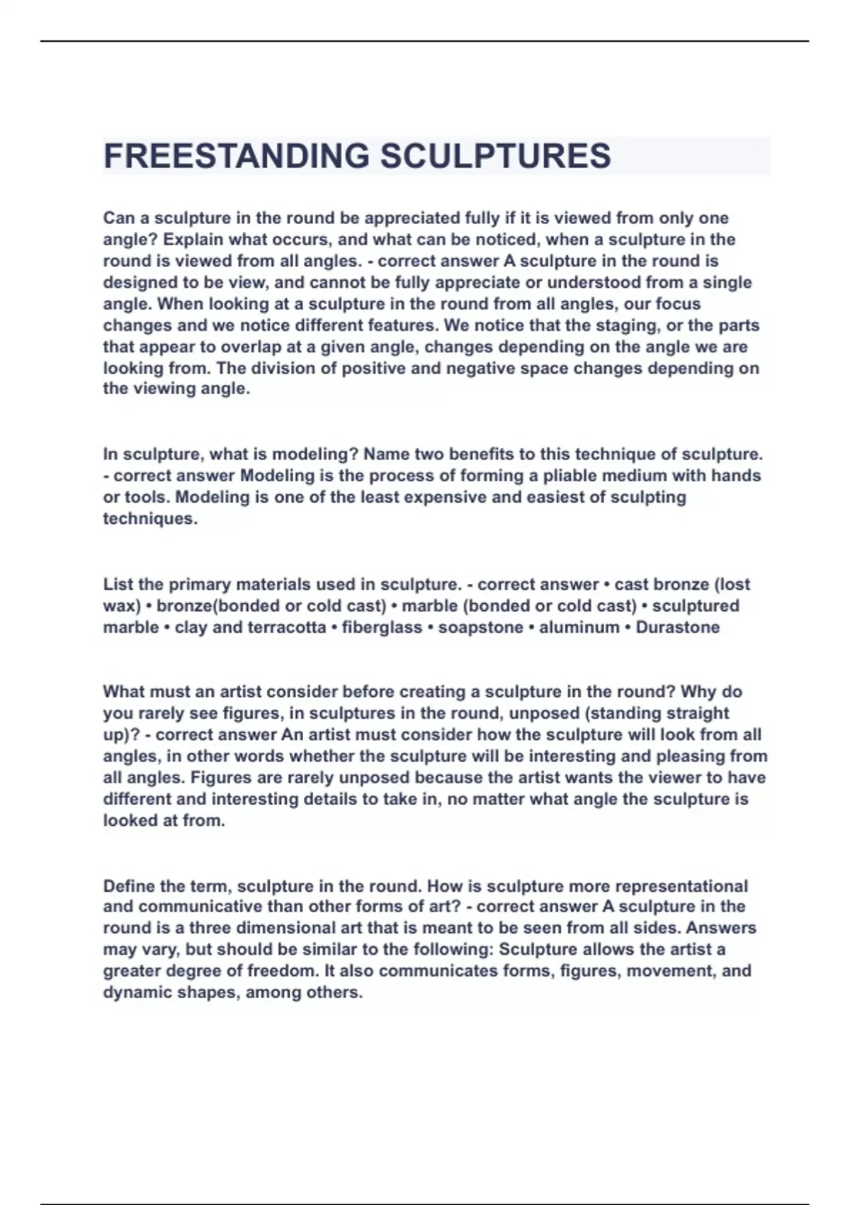 FREESTANDING SCULPTURES|UPDATED&VERIFIED|100% SOLVED|GUARANTEED SUCCESS