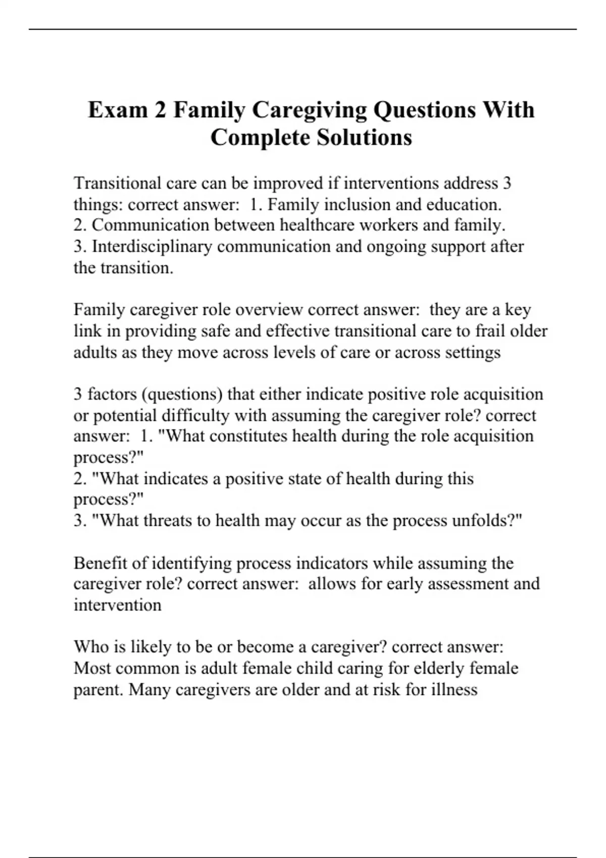 Exam 2 Family Caregiving Questions With Complete Solutions.