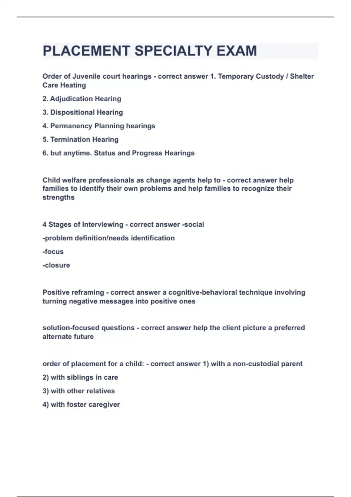 placement specialty examupdatedverified100 sol