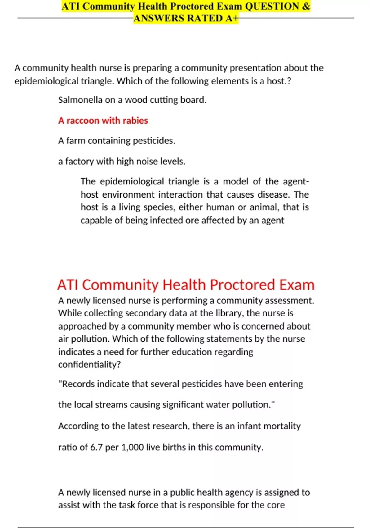 ATI Community Health Proctored Exam QUESTION & ANSWERS RATED A+