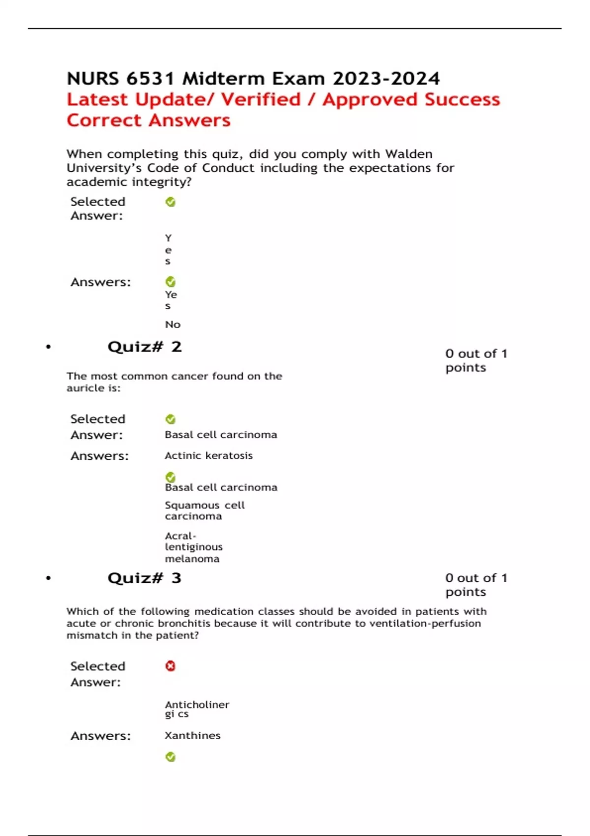 NURS 6531 Midterm Exam Latest Update/ Verified / Approved Success Correct Answers