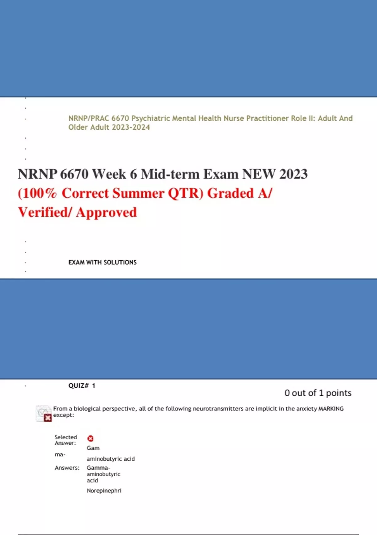 NRNP 6670 Week 6 Mid-term Exam NEW (100% Correct Summer QTR) Graded A/ Verified/ Approved