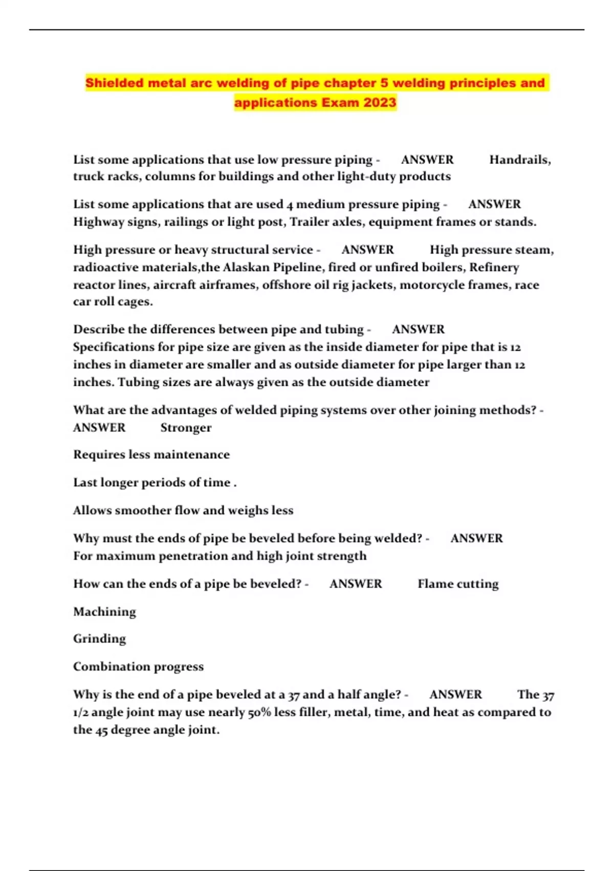 Shielded metal arc welding of pipe chapter 5 welding principles and applications Exam 2023