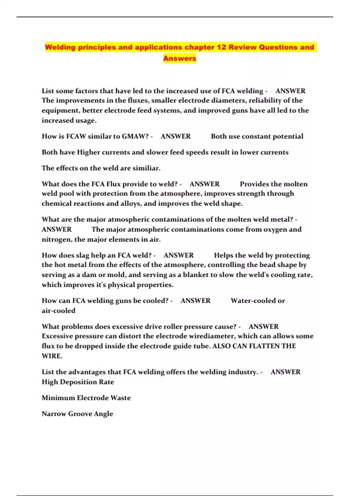 Welding principles and applications chapter 12 Review Questions and Answers...