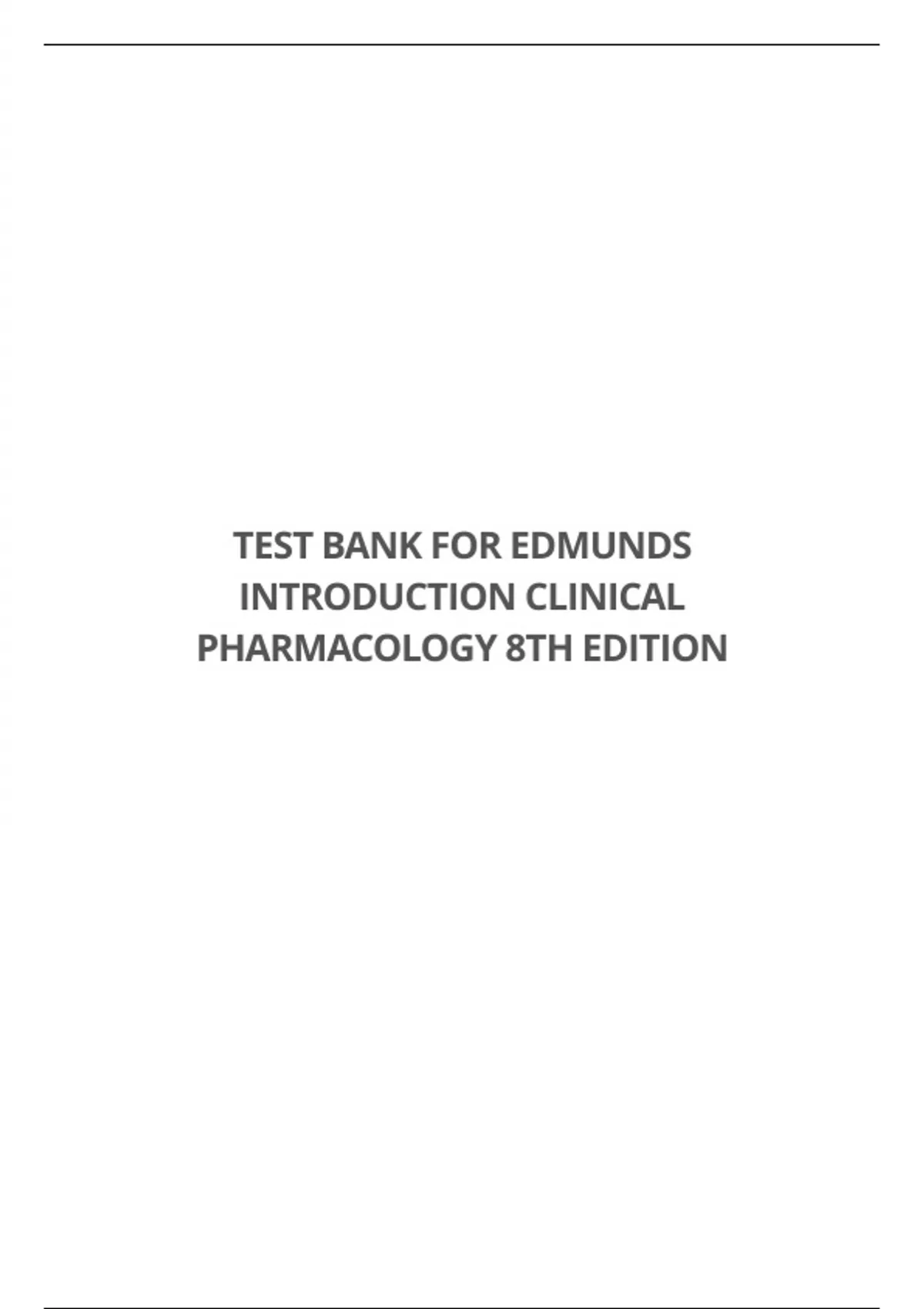 TEST BANK FOR EDMUNDS INTRODUCTION CLINICAL PHARMACOLOGY 8TH EDITION