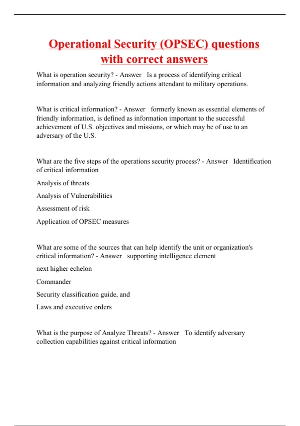 Operational Security (OPSEC) questions with correct answers
