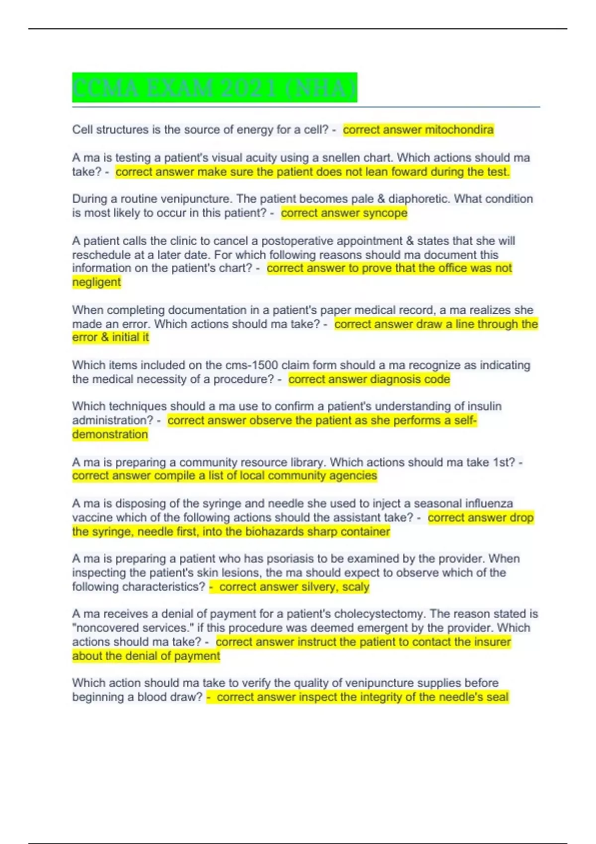 make? - correct answer ill be collecting a blood sample from you today. There will be a