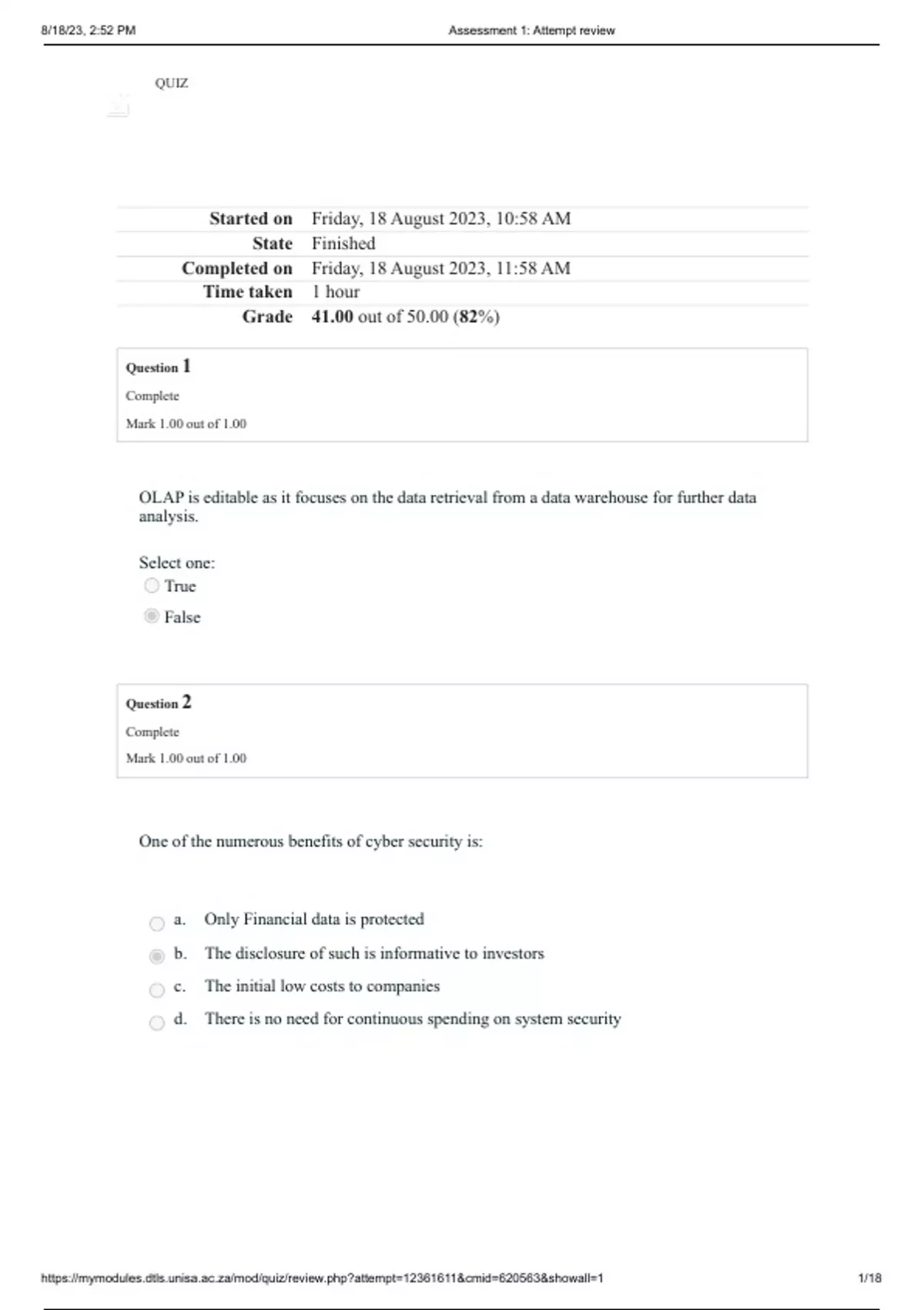 https://mymodules.dtls.unisa.ac.za/mod/quiz/review.php?attempt=12361611&cmid=620563&showall=1 1/18