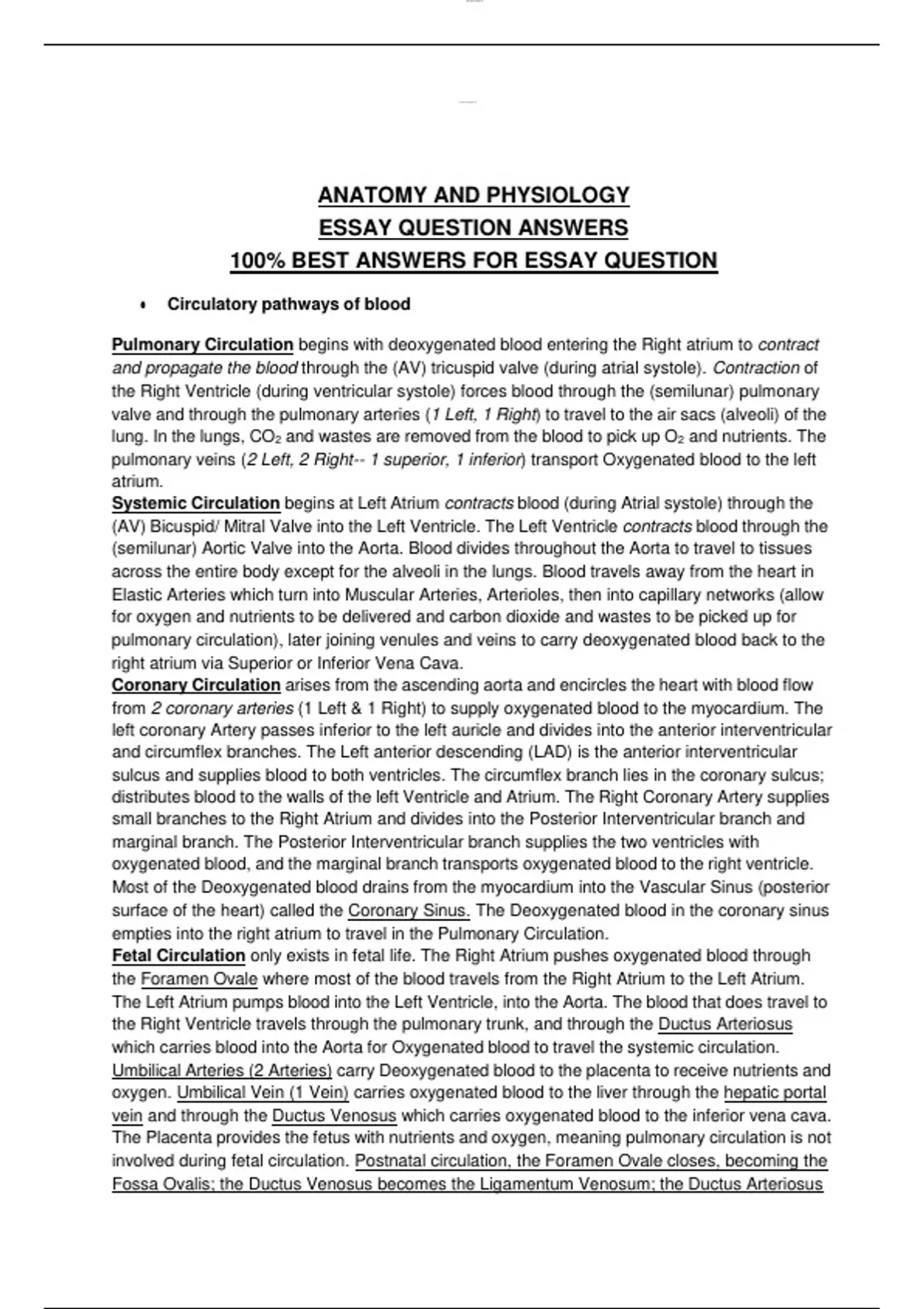 ANATOMY AND PHYSIOLOGY ESSAY QUESTION ANSWERS 100% BEST ANSWERS FOR ESSAY QUESTION