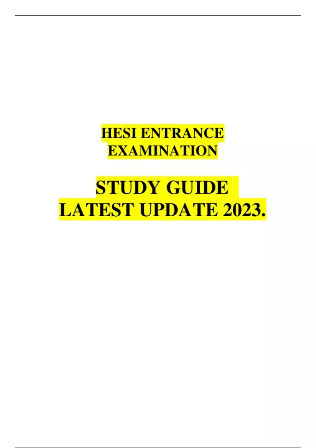 Summary HESI ENTRANCE EXAMINATION STUDY GUIDE LATEST UPDATE 2023