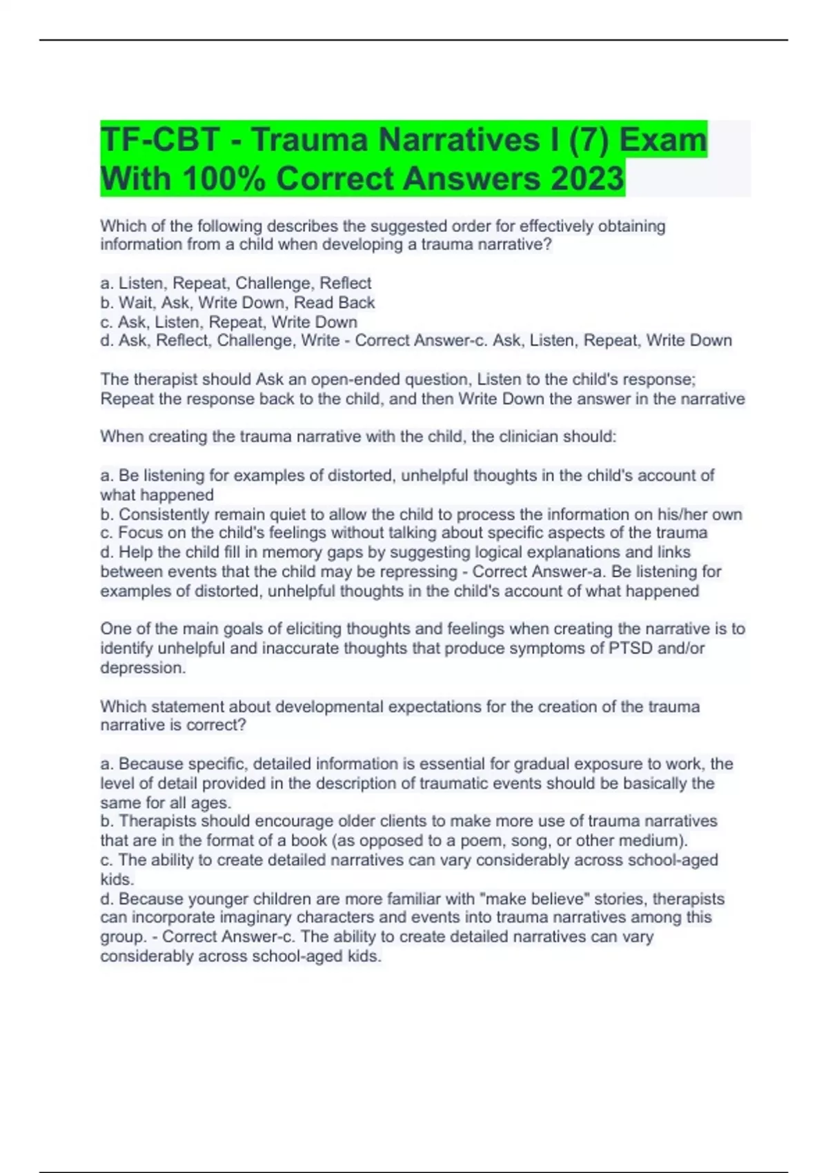 TF-CBT - Trauma Narratives I (7) Exam With 100% Correct Answers 2023