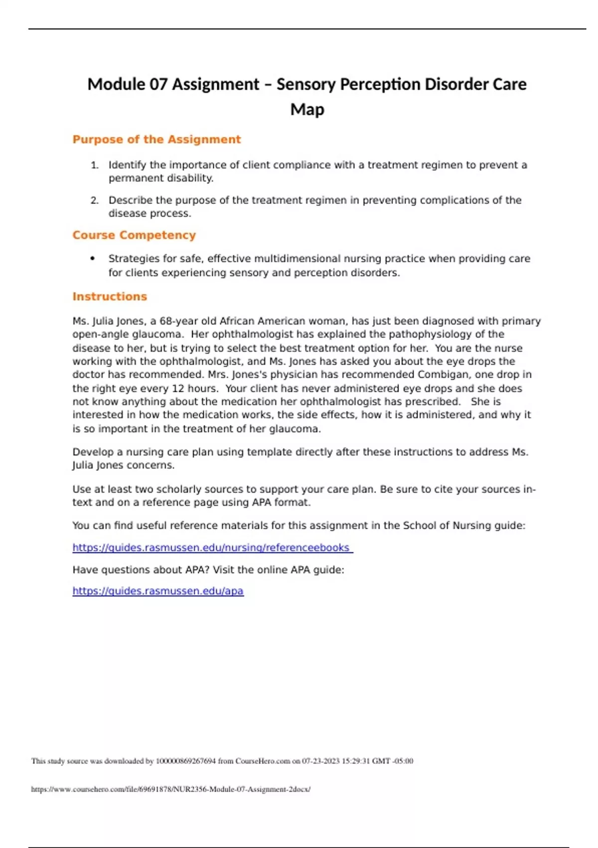 NUR 2356 Module 07 Assignment - Sensory Perception Disorder CareMap