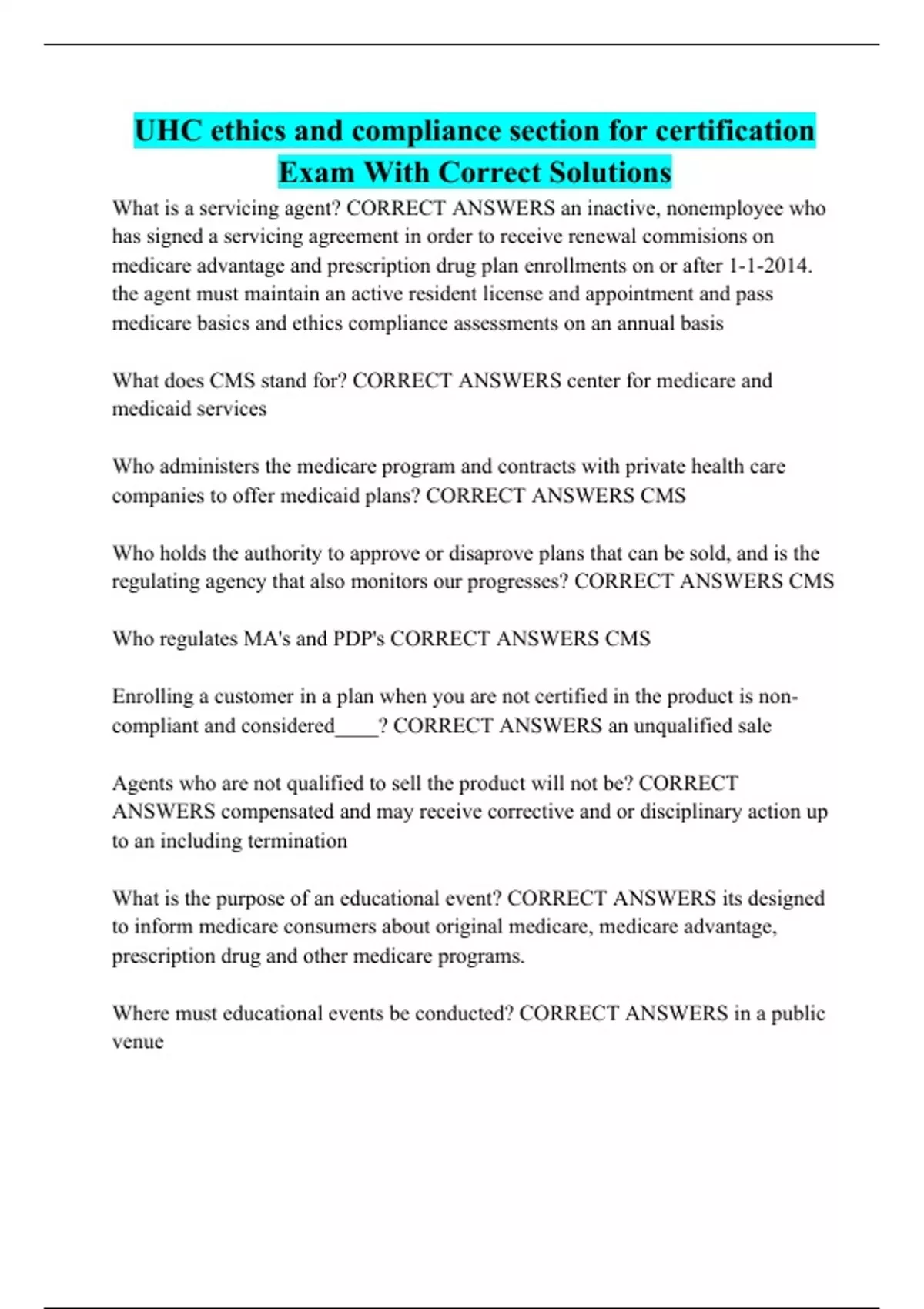 UHC ethics and compliance section for certification Exam With Correct Solutions