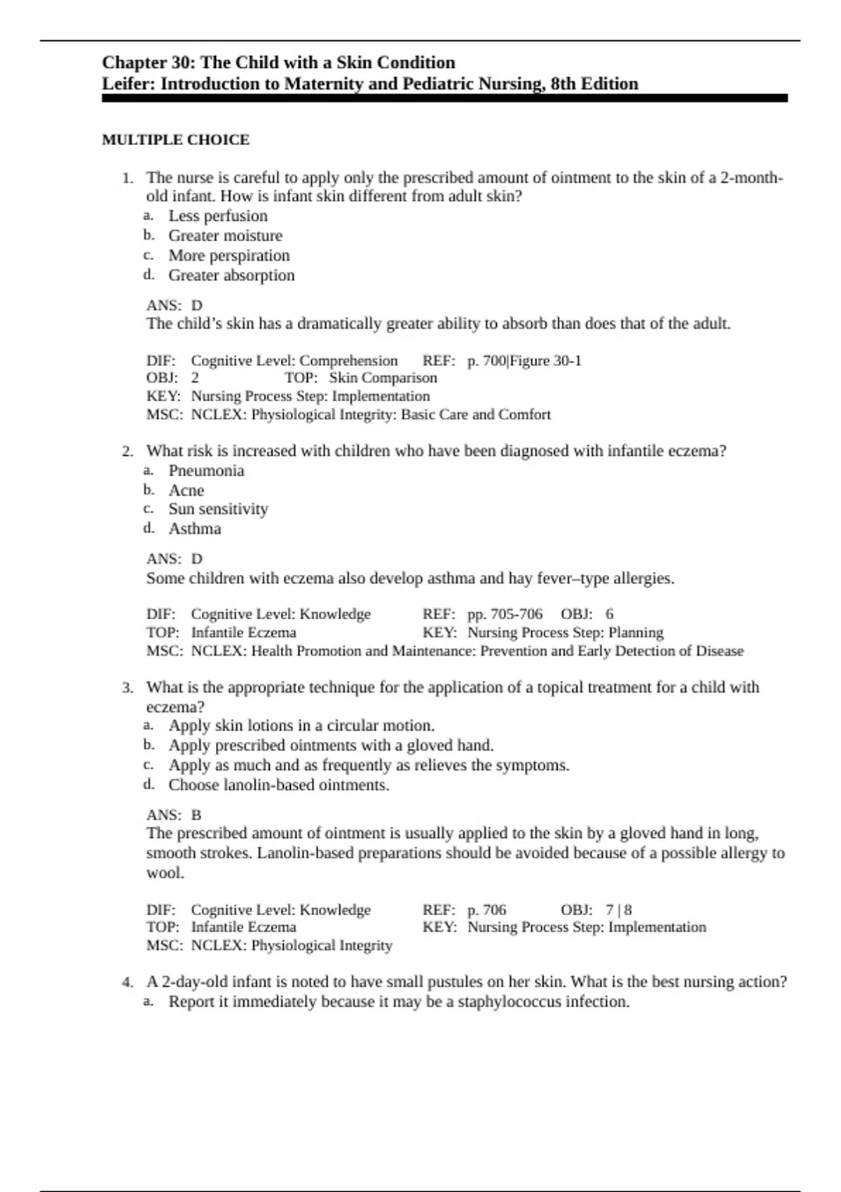 Test Bank for Introduction To Maternity And Pediatric Nursing, 9th Edition By Gloria Leifer All Chapters
