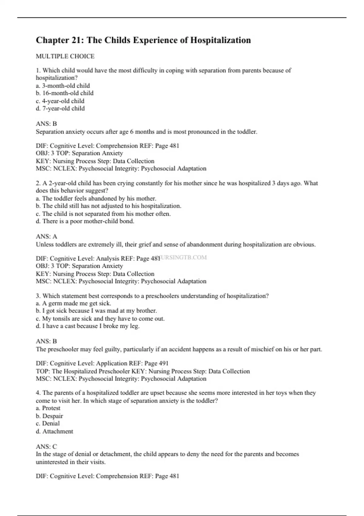Test Bank for Introduction To Maternity And Pediatric Nursing, 9th Edition By Gloria Leifer All Chapters