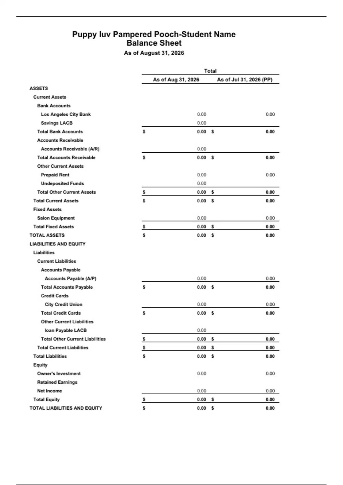 Balance Sheet August 2026