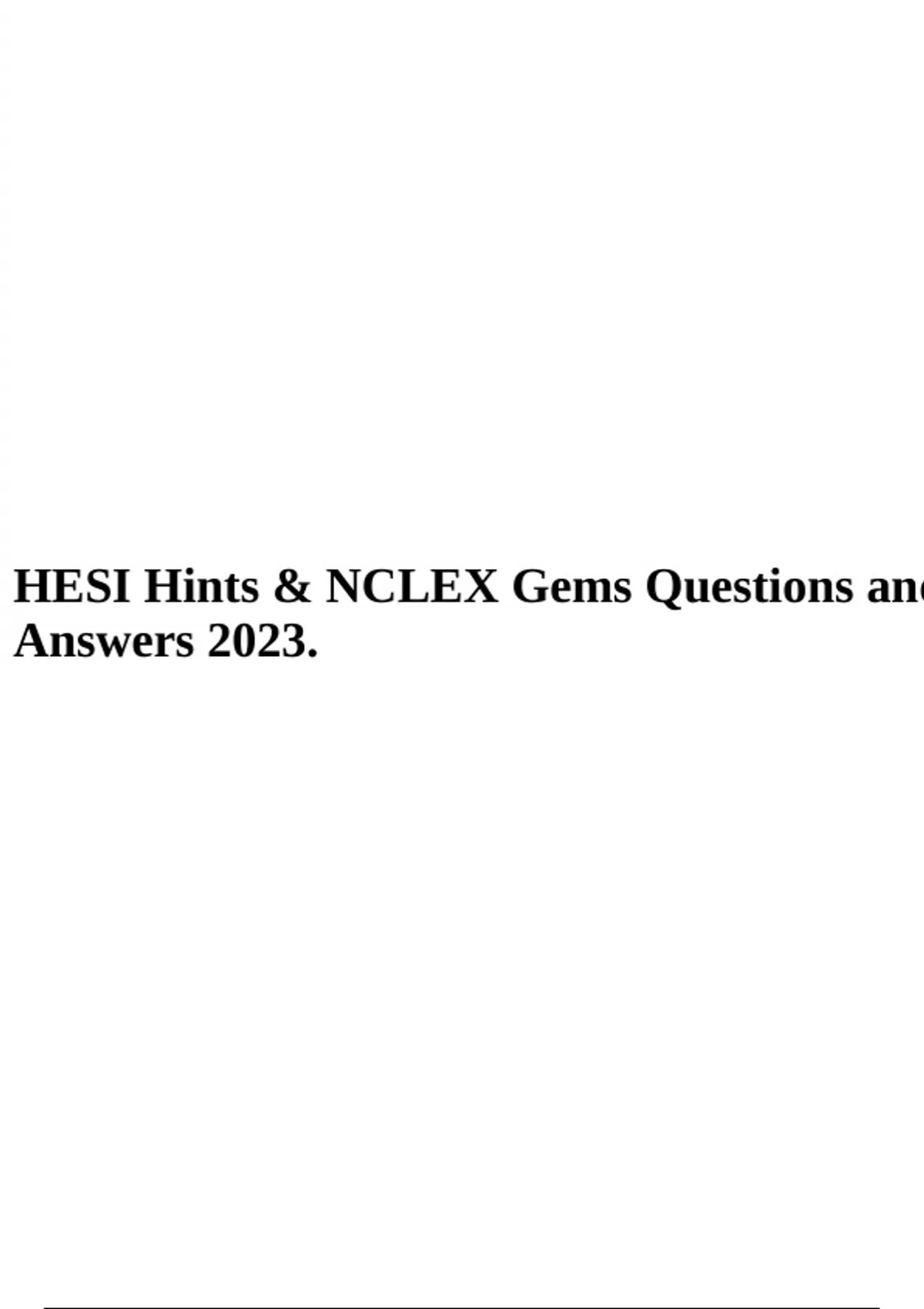 HESI Hints & NCLEX Gems Questions and Answers 2023.