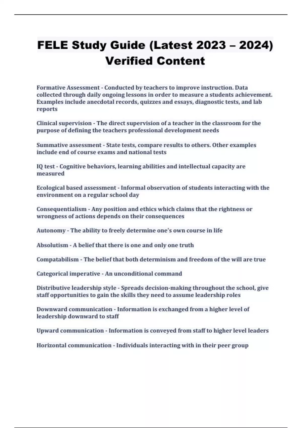 FELE Study Guide (Latest 2023 – 2024) Verified Content