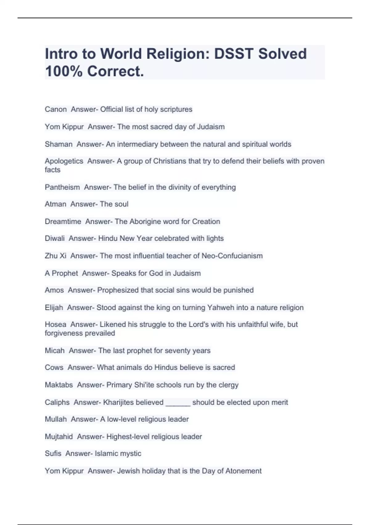 - DSST Intro to World Religions