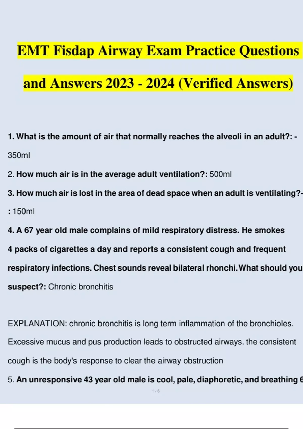 EMT FISDAP AIRWAY EXAM 2023 - 2024 STUDY BUNDLE PACK SOLUTION (Verified)