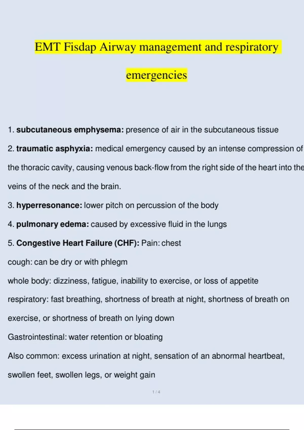 EMT FISDAP Airway Management and Respiratory Emergencies (Verified) EMT FISDAP Airway Management and Respiratory Emergencies (Verified)