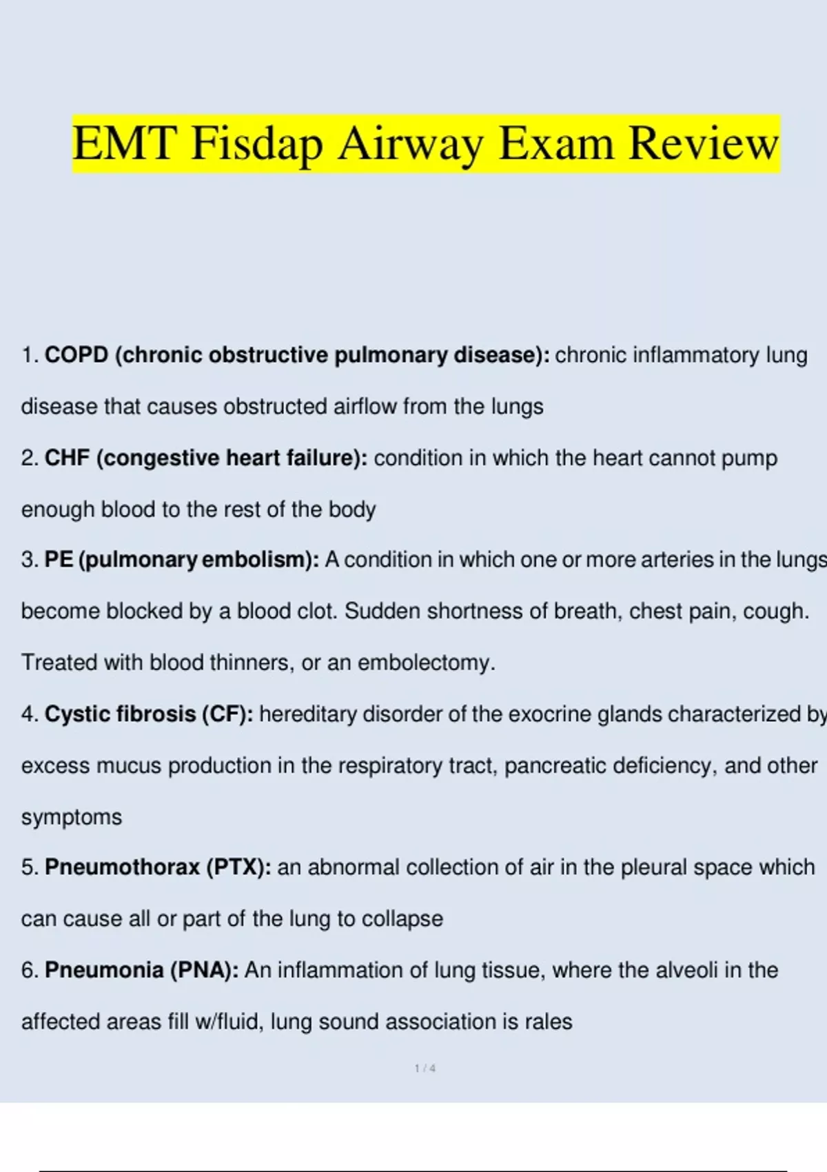 EMT FISDAP Airway Exam Review (Verified) EMT FISDAP Airway Exam Review (Verified)