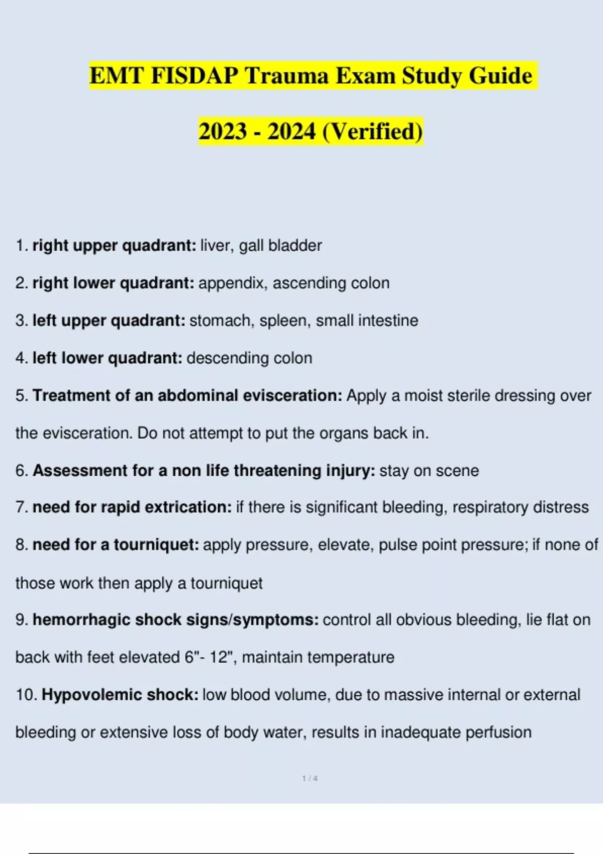 EMT FISDAP Trauma Exam Study Guide (Verified) EMT FISDAP Trauma Exam Study Guide (Verified)