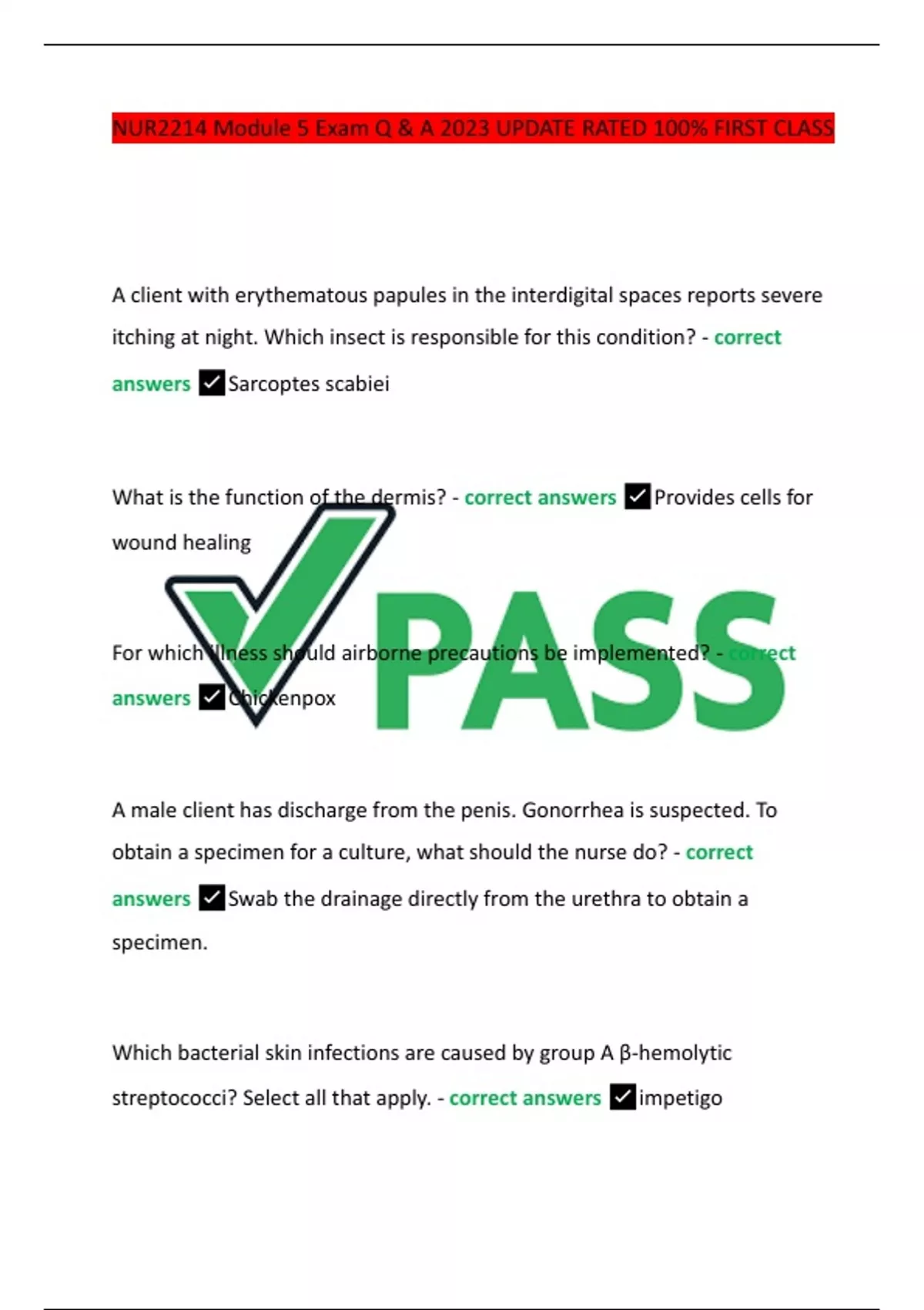 NUR2214 Module 5 Exam Q & A 2023 UPDATE RATED 100% FIRST CLASS