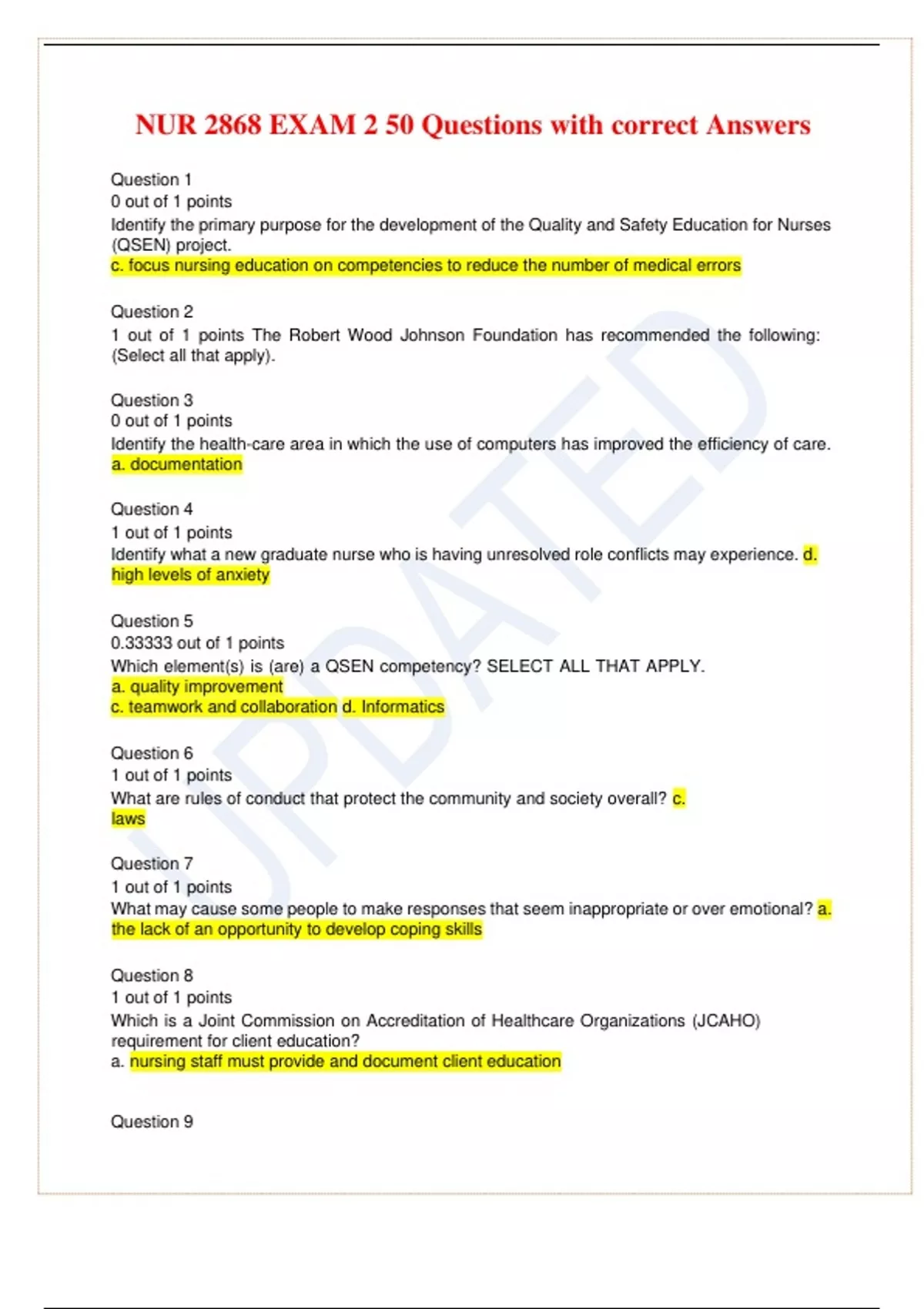 2023 nur 2868 exam 2 latest updated exam questions with 100% correct answers