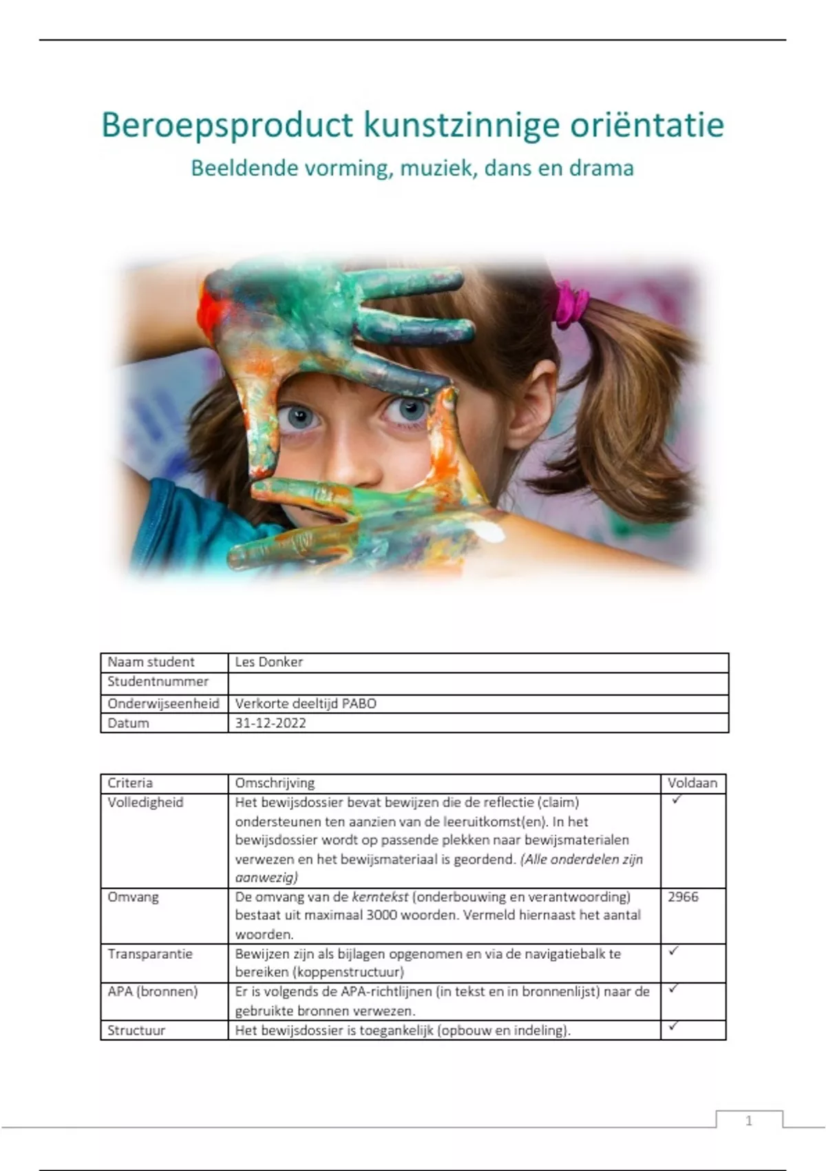 Beroepsproduct Kunstzinnige oriëntatie Pabo (verkorte deeltijd) Cijfer 7,4