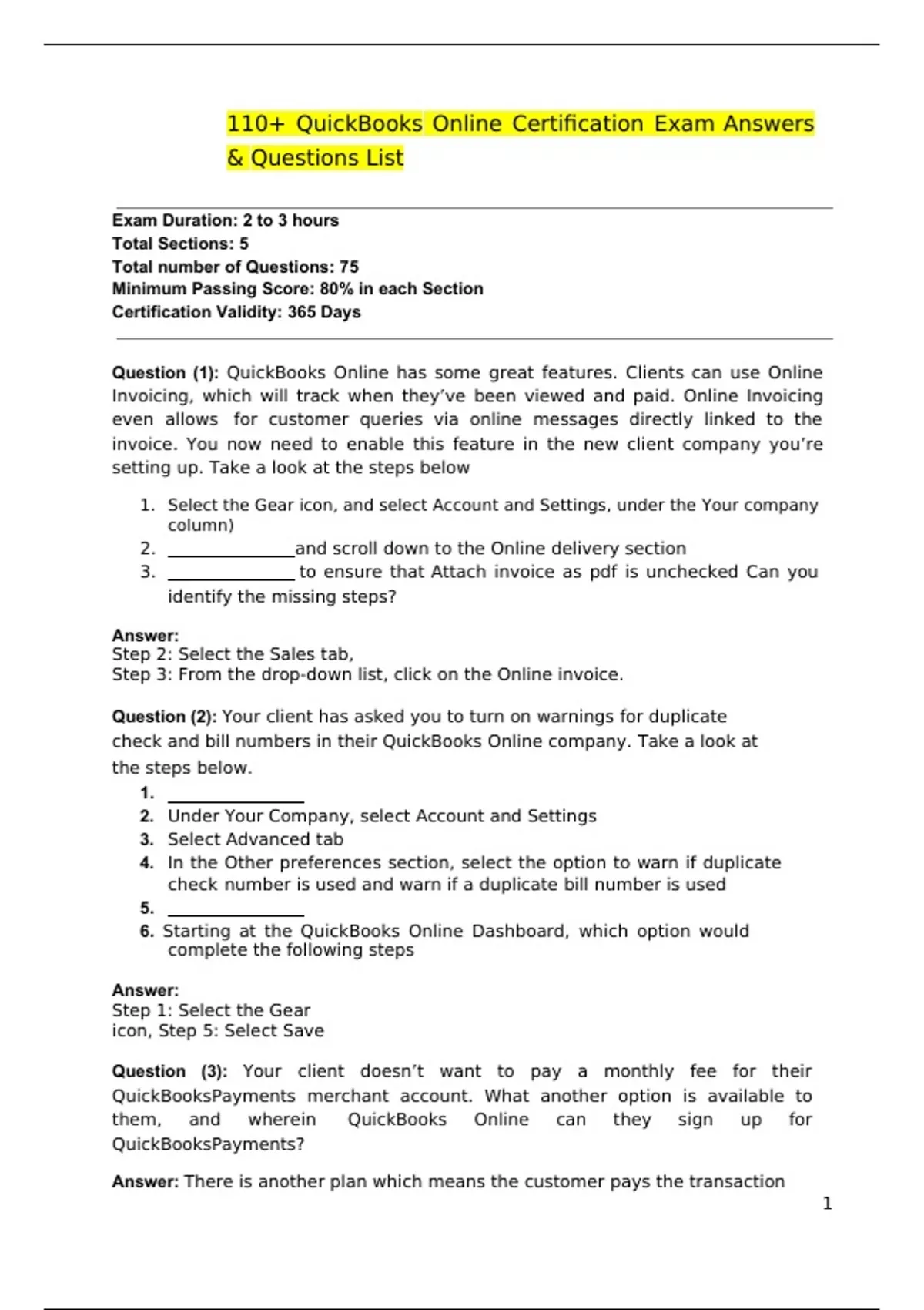 quickbooks exam 2023 questions and answers
