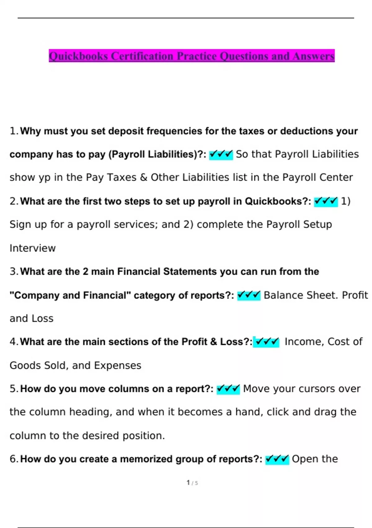 quickbooks certification practice questions