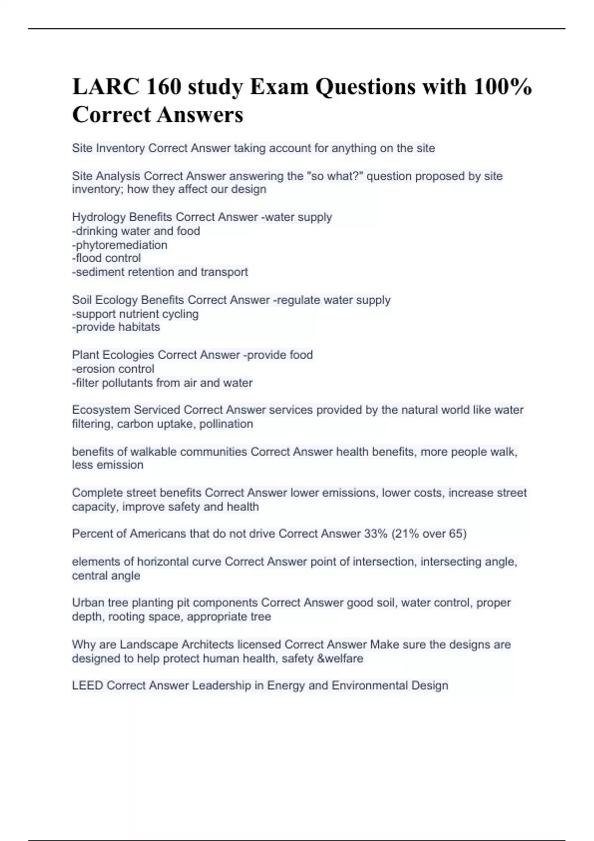 LARC 160 study Exam Questions with 100% Correct Answers