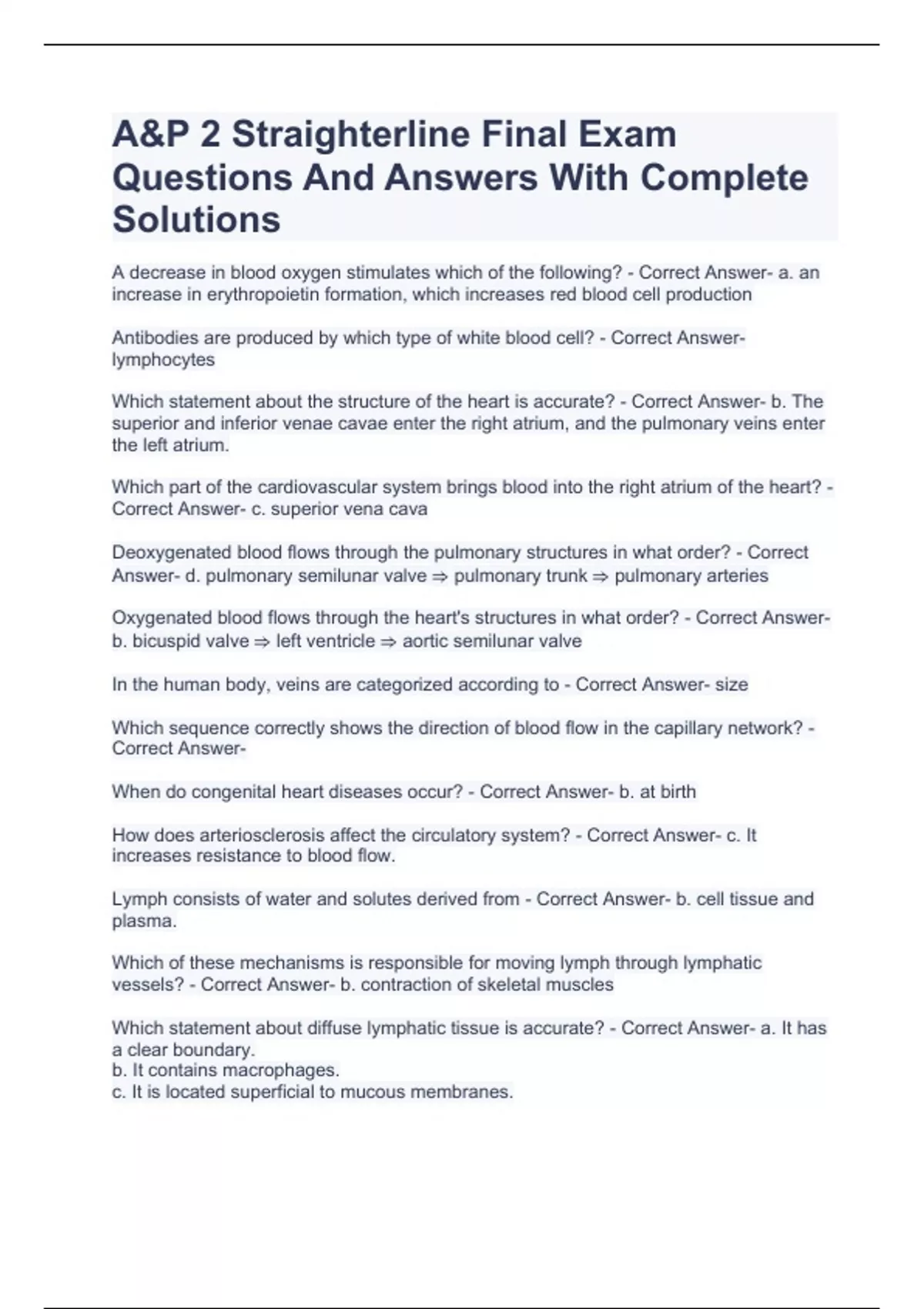 A&P 2 Straighterline Final Exam Questions And Answers With Complete Solutions