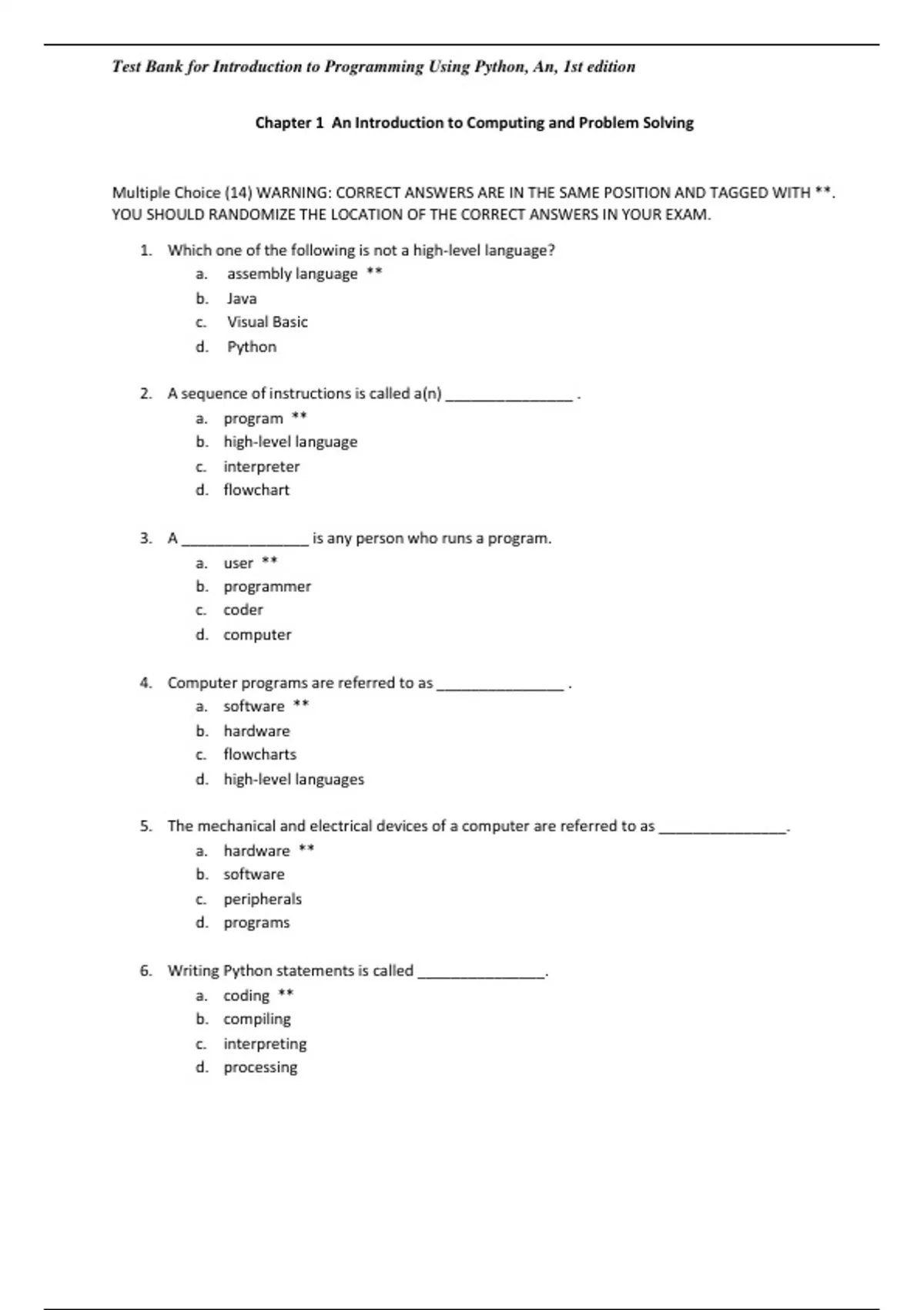 Test Bank For Introduction to Programming Using Python, An 1st Edition All Chapters