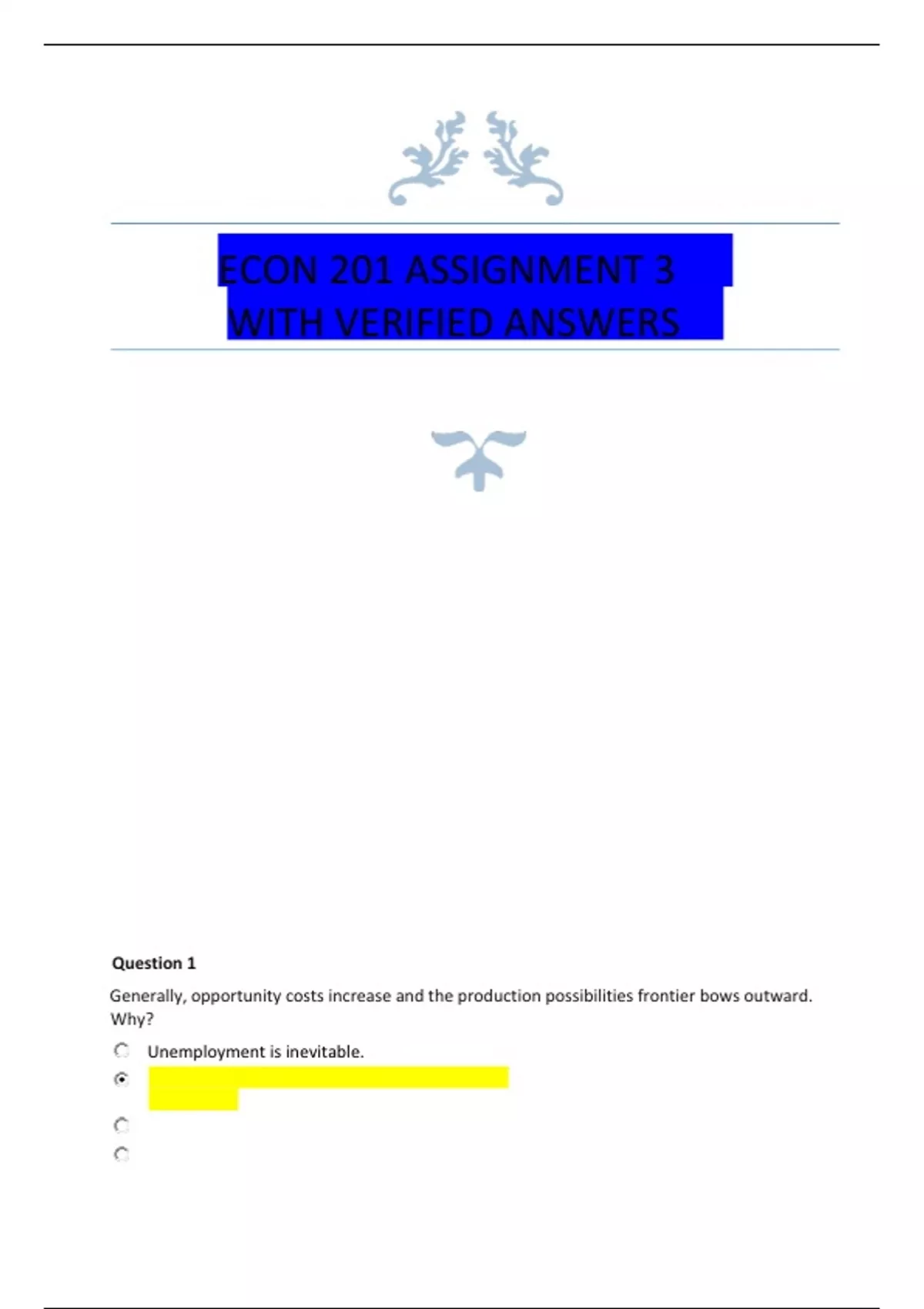 ECON 201 ASSIGNMENT 3 WITH VERIFIED ANSWERS
