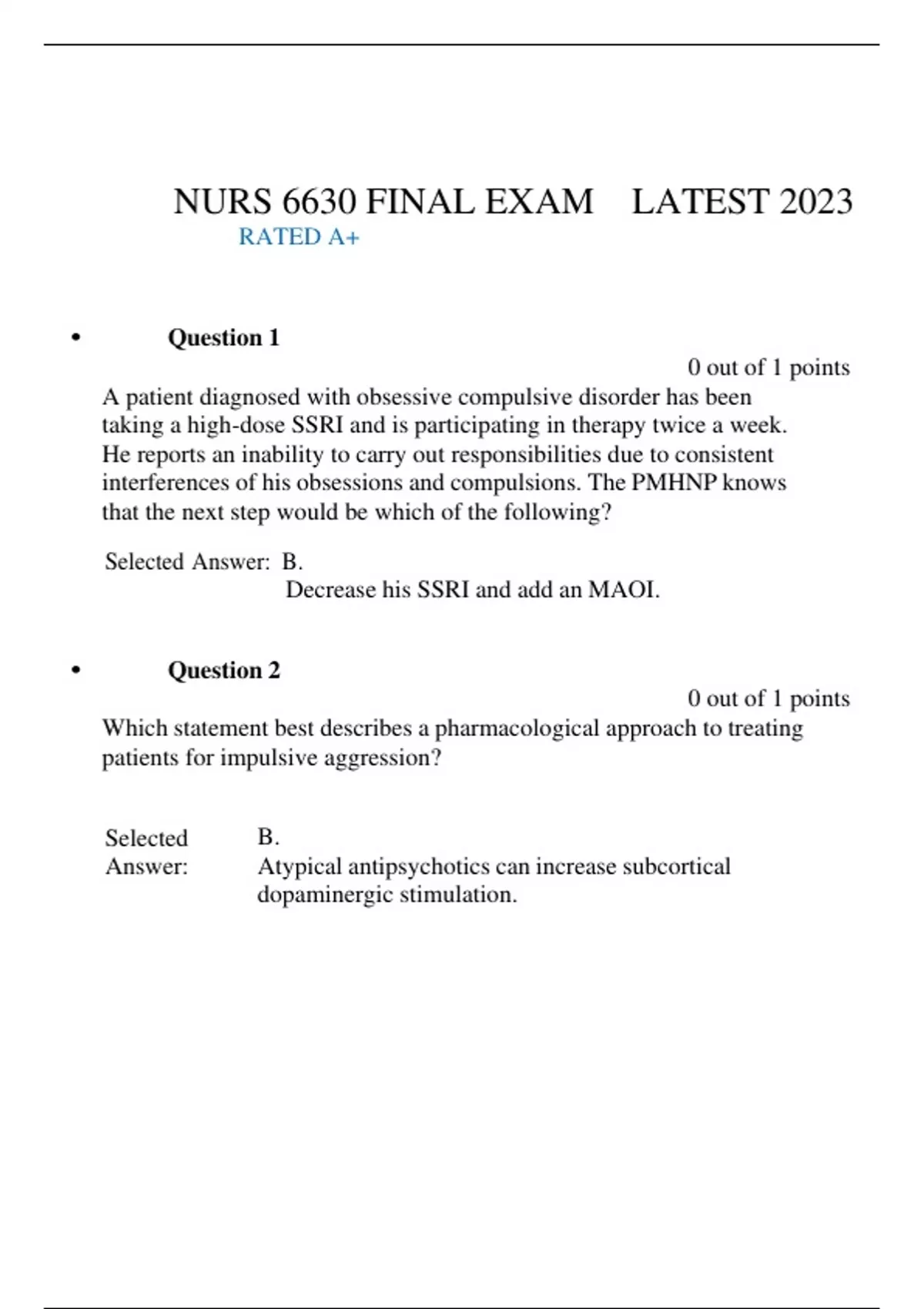 NURS 6630 Final Exam Latest 2023/2024 Latest Update