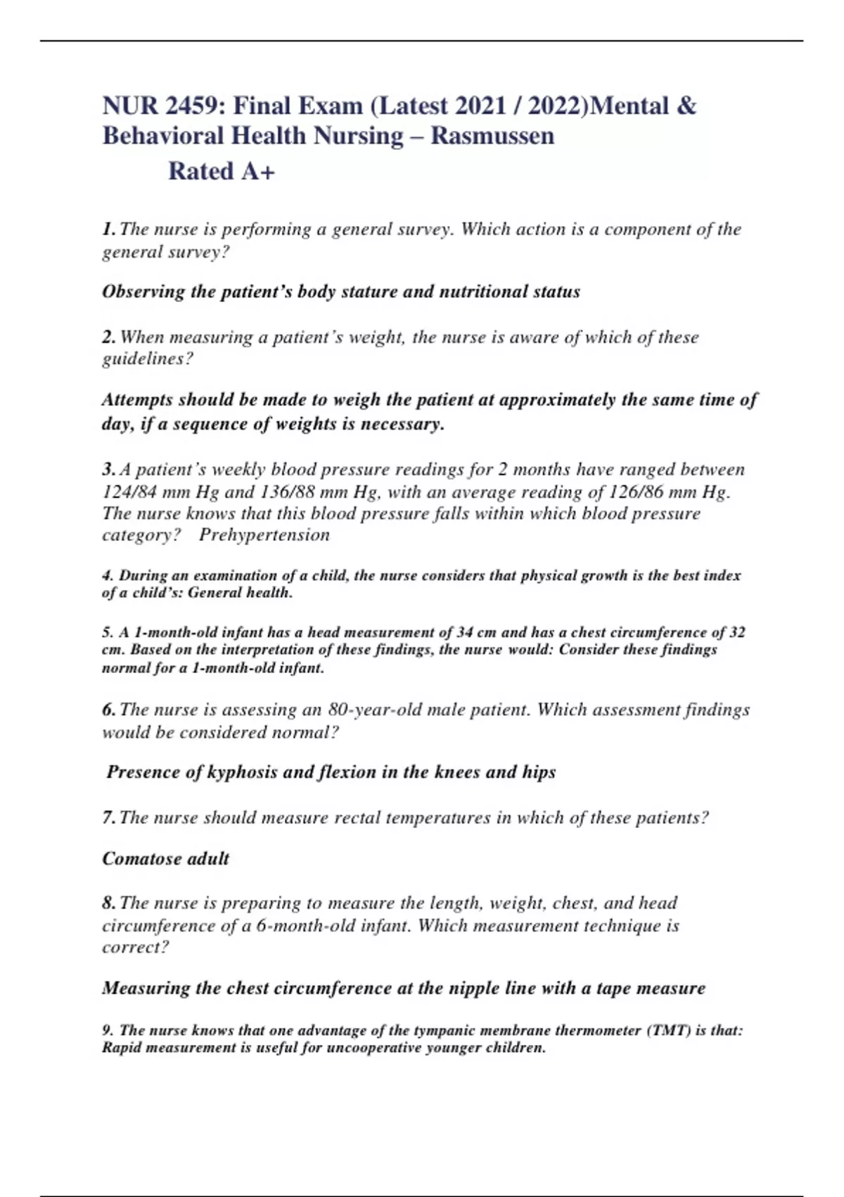 NUR 2459 Final Exam Latest 2021/2022 NUR 2459 Final Exam Latest 2021/2022 NUR 2459 Final Exam Latest 2021/2022