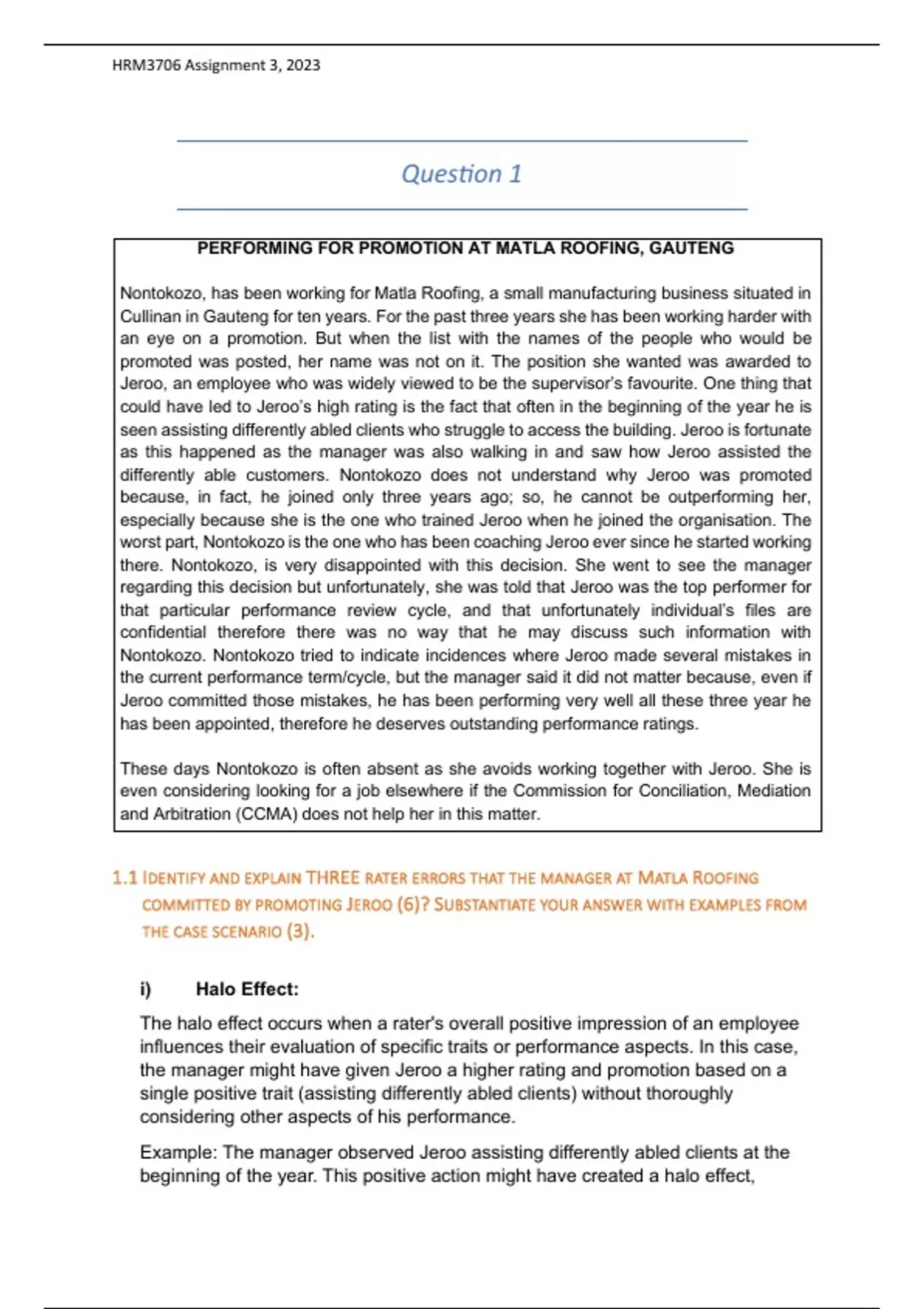 HRM3706 , Assignment 3, fully completed written assignment with answers. Please refrain from plagiarizing and merely use as a guide.