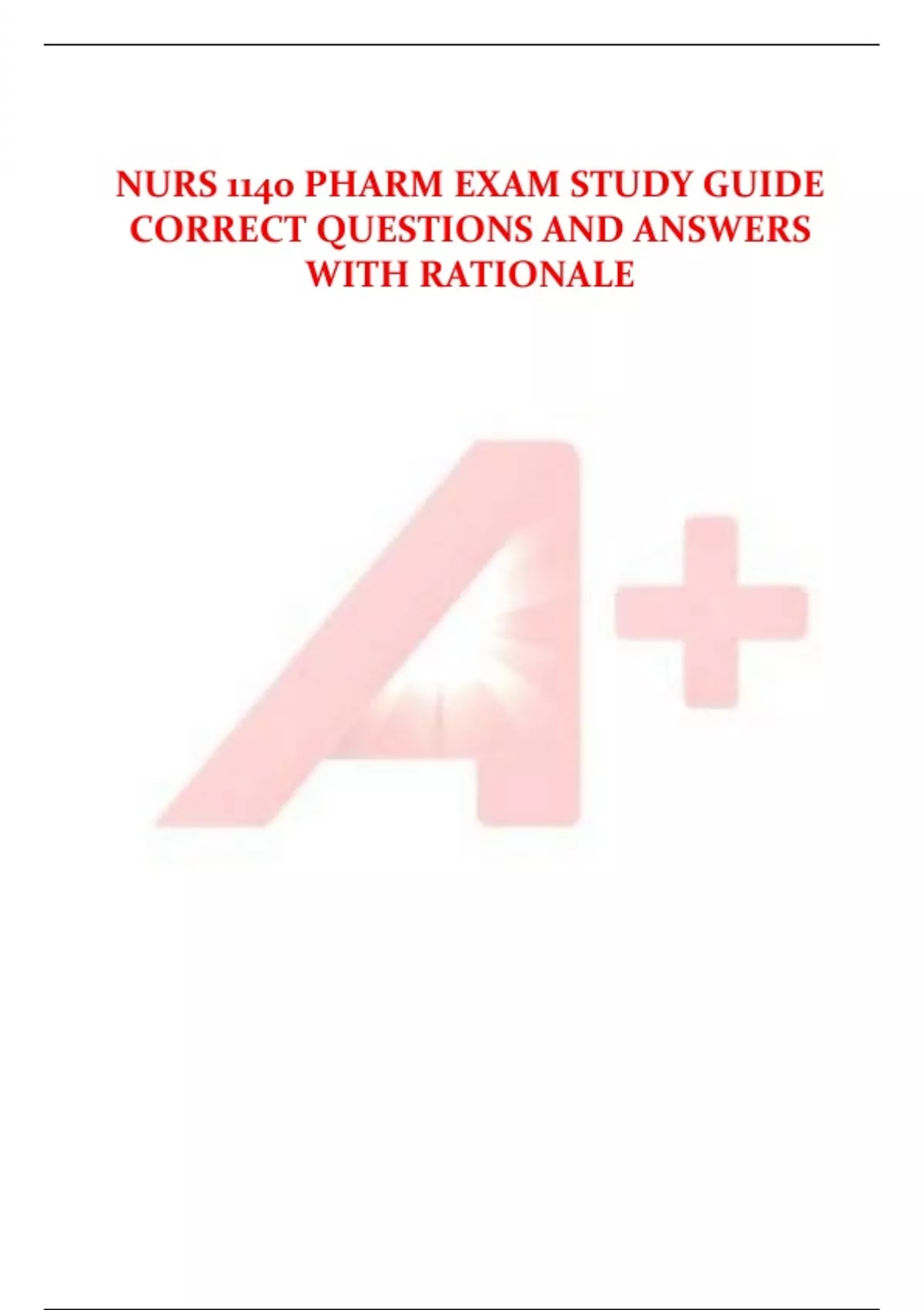 NURS 1140 PHARM EXAM STUDY GUIDE CORRECT QUESTIONS AND ANSWERS WITH RATIONALE