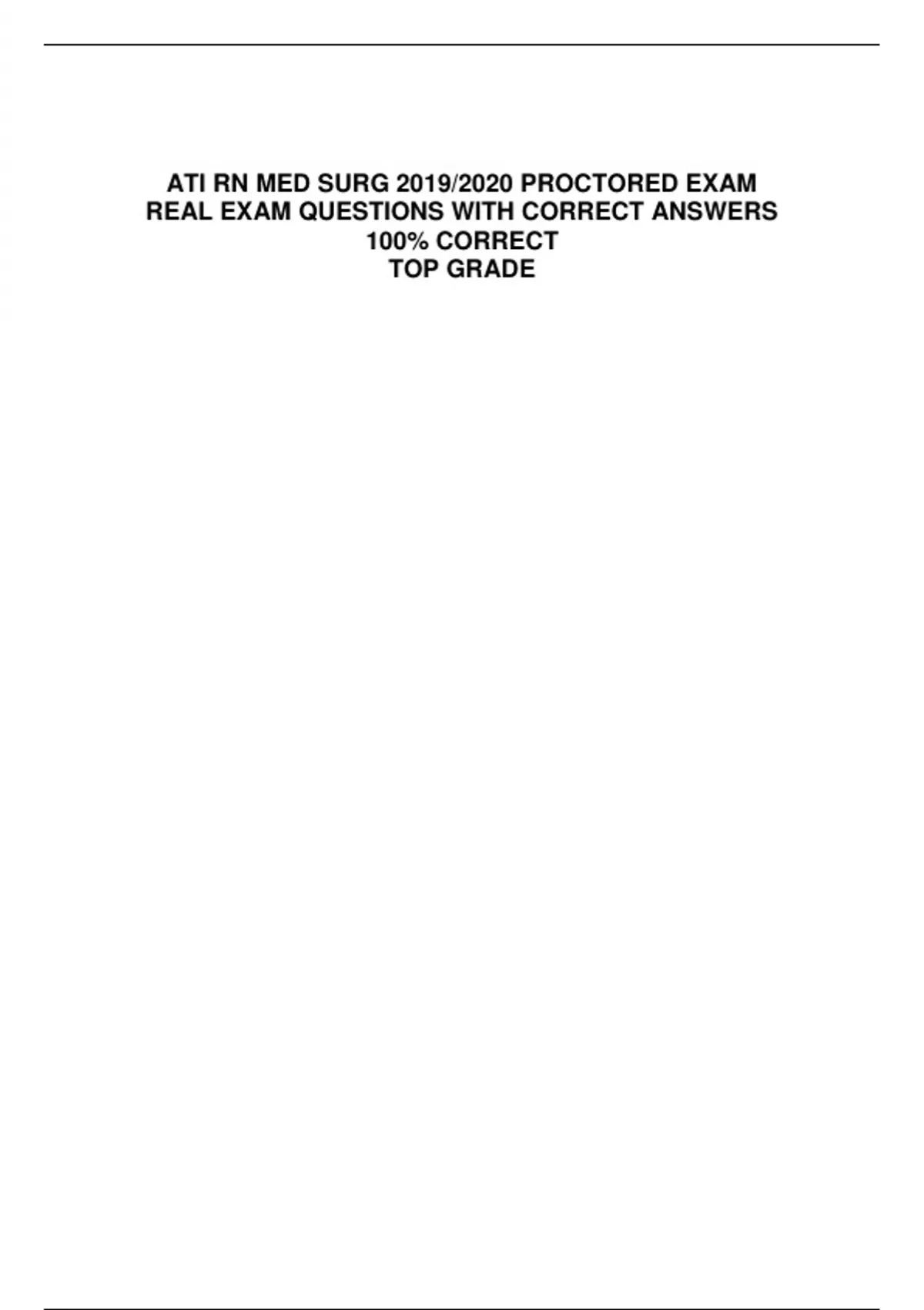 ATI RN MED SURG 2019/2020 PROCTORED EXAM REAL EXAM QUESTIONS WITH CORRECT ANSWERS 100% CORRECT TOP GRADE