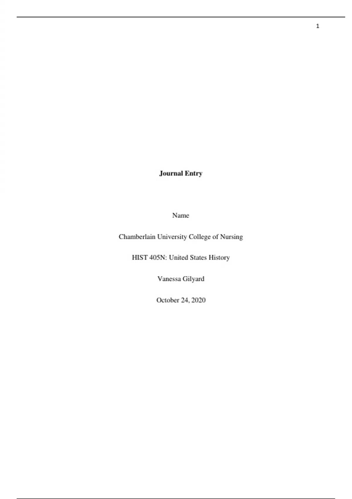 HIST 405N Week 8 Assignment: Journal Entry – Reflection