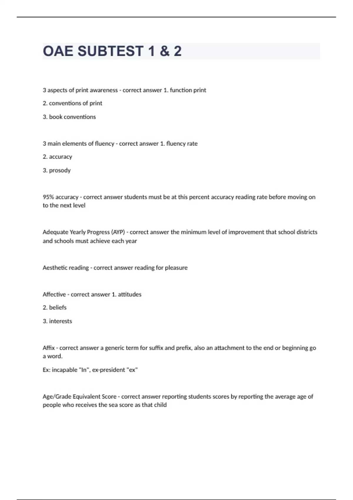 OAE SUBTEST 1 & 2 question with complete solution 2023