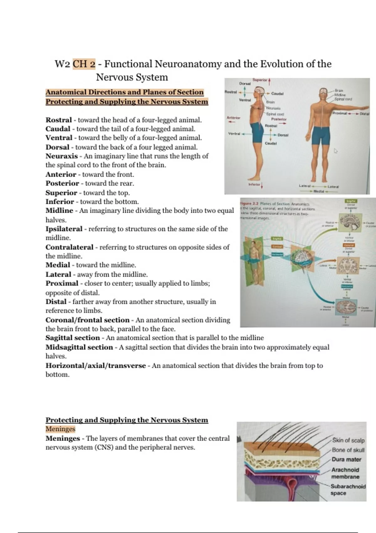 Detailed notes for chapter 2 Functional Neuroanatomy and the Evolution of the Nervous System. Freberg, L. (2018). Discovering Behavioral Neuroscience: An introduction to Biological Psychology. Cengage Learning.